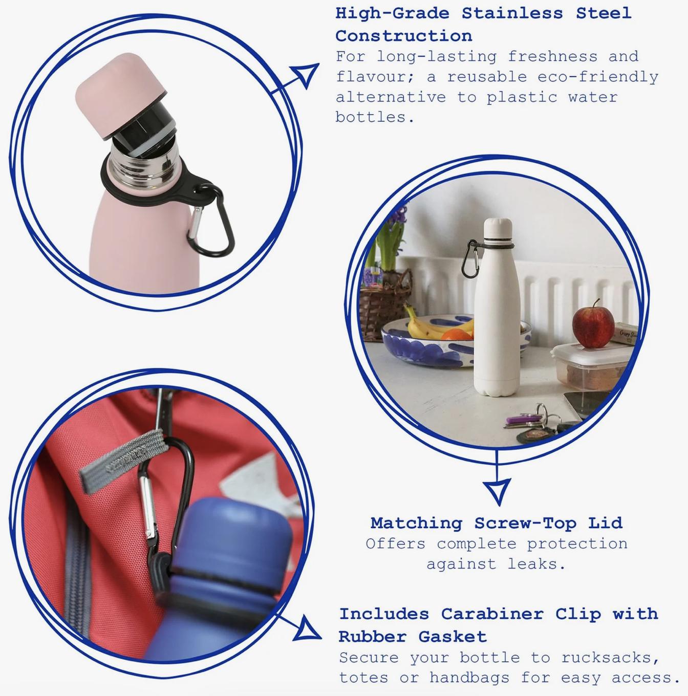 High-Grade Stainless Steel Construction - For long-lasting freshness and flavour; a reusable eco-friendly alternative to plastic water bottles